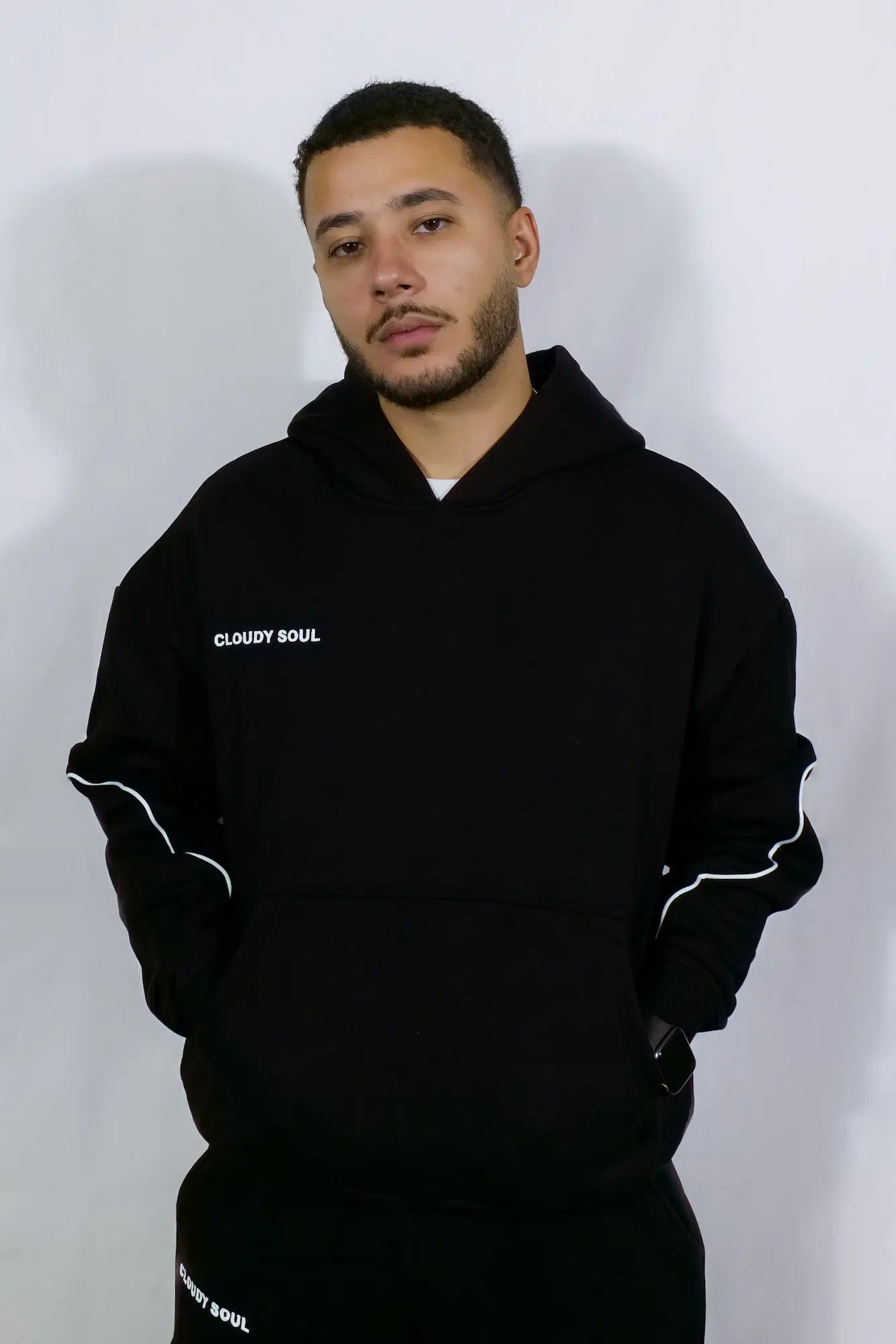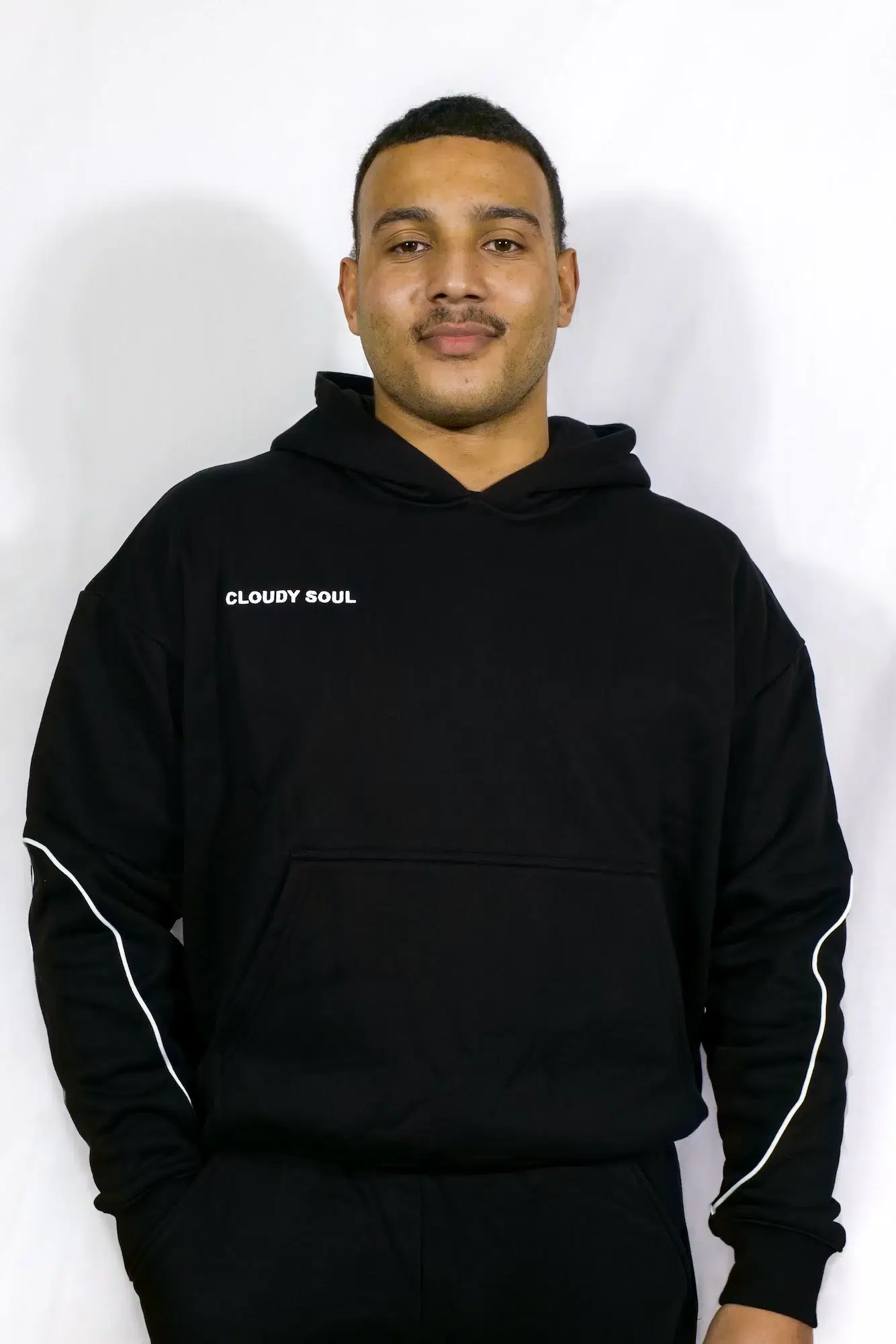 Des lignes blanches parcourent les manches et reprennent une partie du logo Cloudy Soul, créant un détail graphique subtil et reconnaissable.