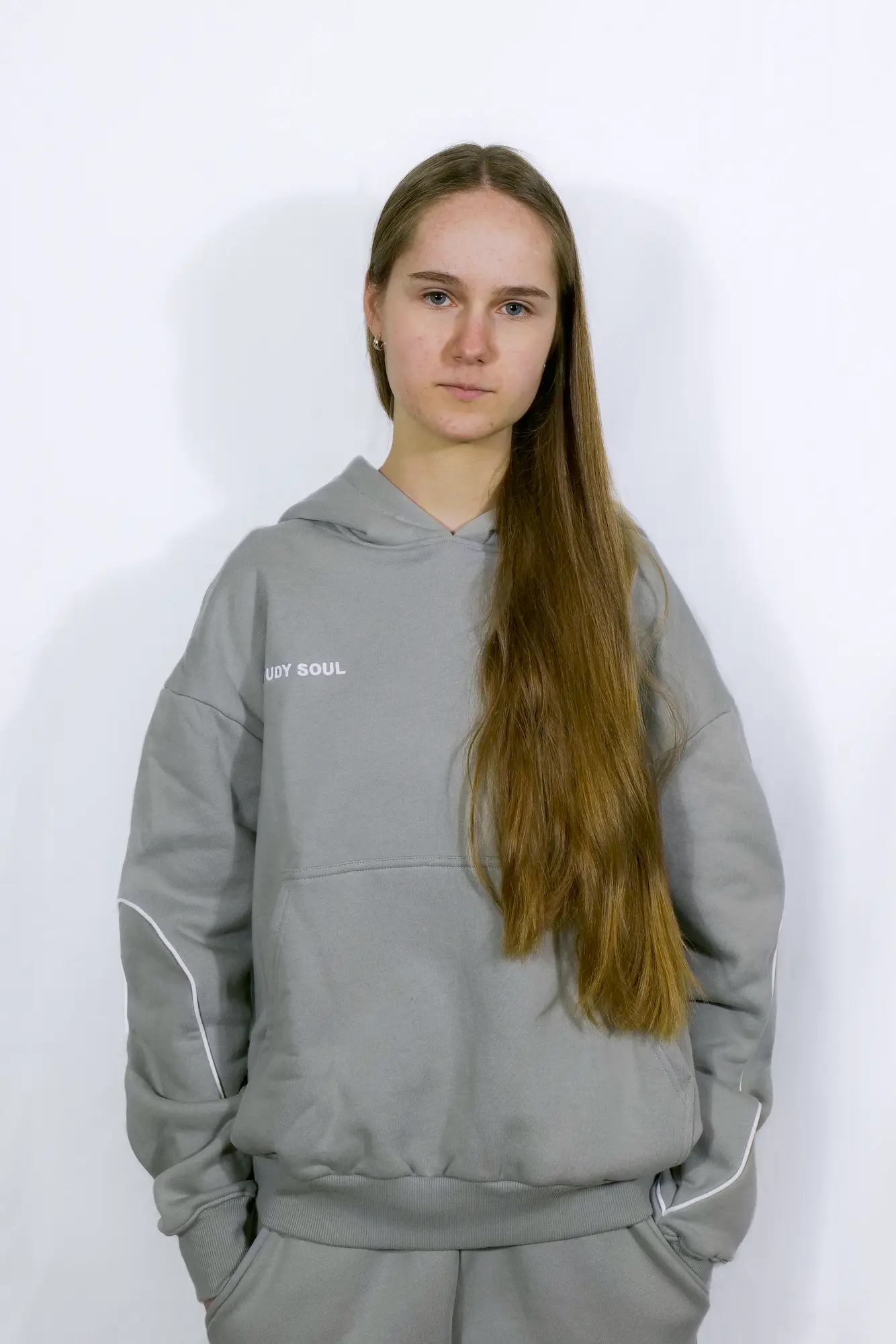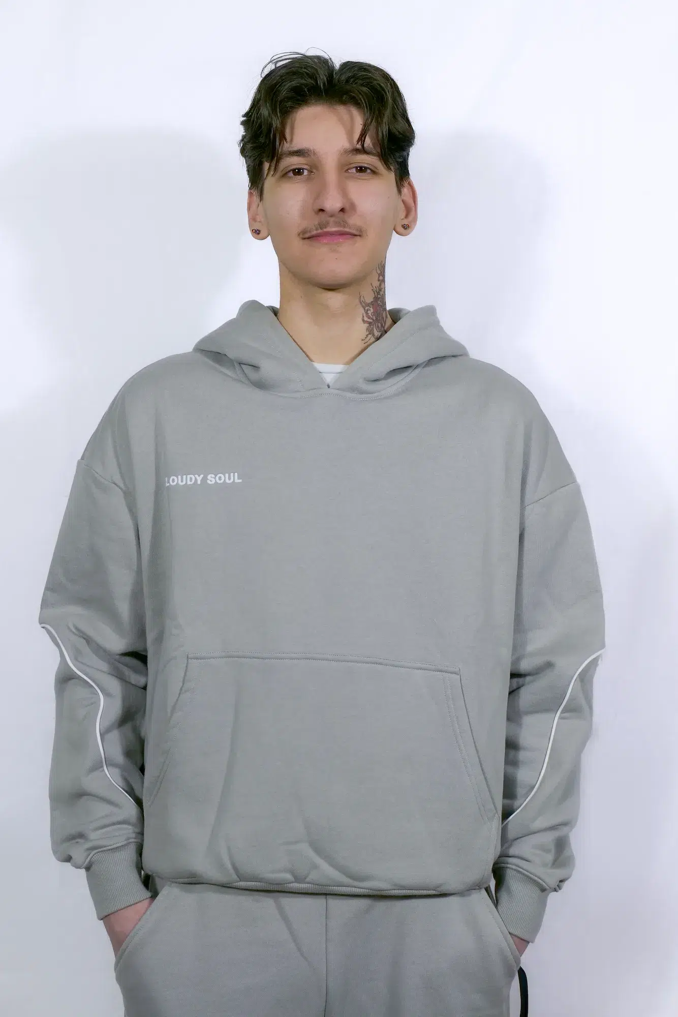 À l’avant, Cloudy Soul est brodé, apportant une signature discrète et soignée.